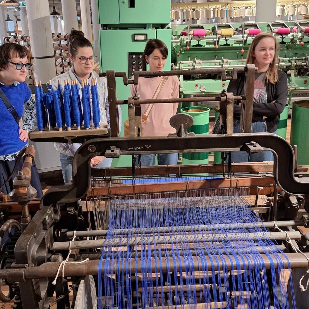Pierwszym punktem było oprowadzanie po wystawie stałej „Miasto-Moda-Maszyna” w Centralne Muzeum Włókiennictwa, która określana jest „futurystycznym poematem o życiu i pracy w Łodzi”. Panu Andrzejowi Jankowskiemu dziękujemy za wciągającą opowieść o przemyśle, przemianach i przędzy.