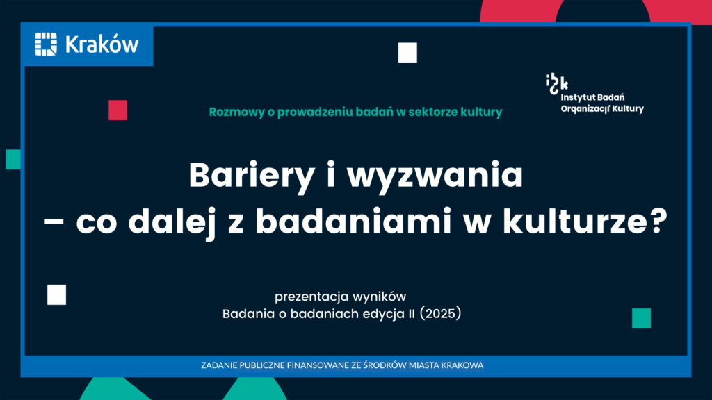 W tym roku w ramach spotkań „Rozmowy o prowadzeniu badań w sektorze kultury” wspólnie z zaproszonymi gośćmi z krakowskich instytucji porozmawiamy o wynikach drugiej edycji raportu „Badania o badaniach”.
