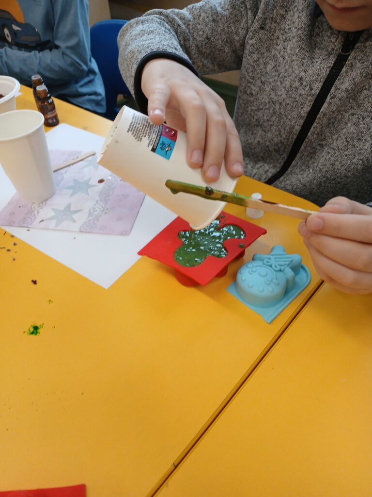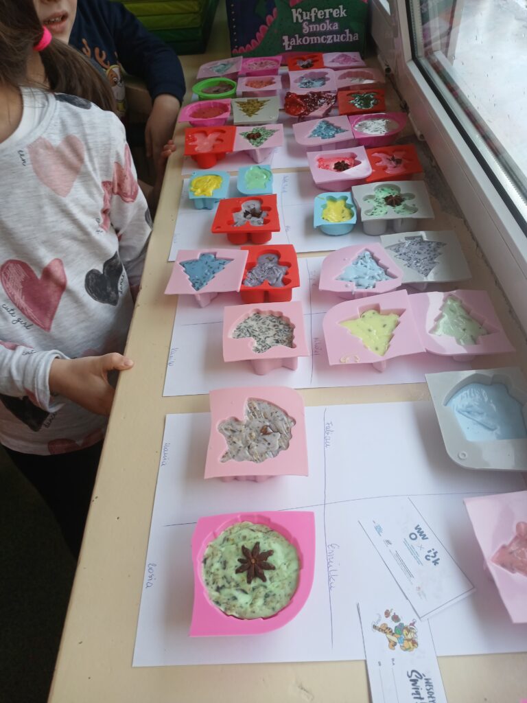mydełka, które już niedługo staną się świątecznymi prezentami dla rodziców. Prace